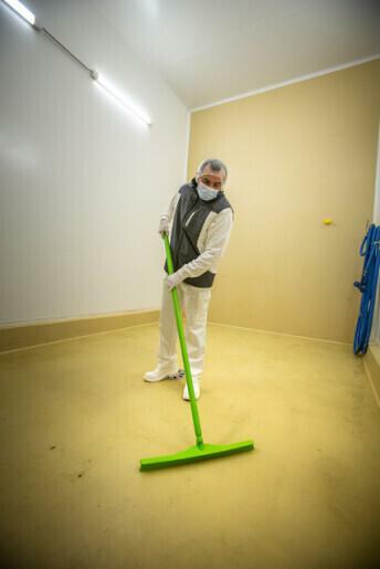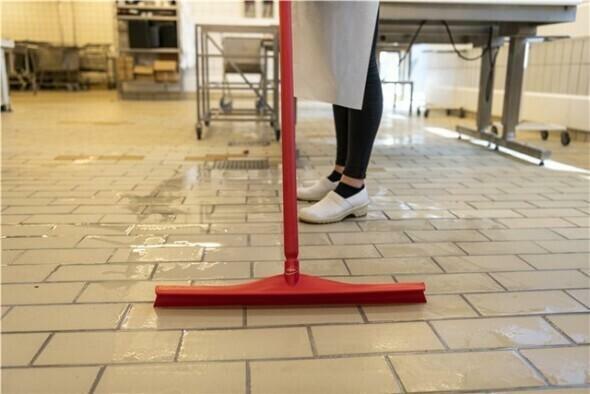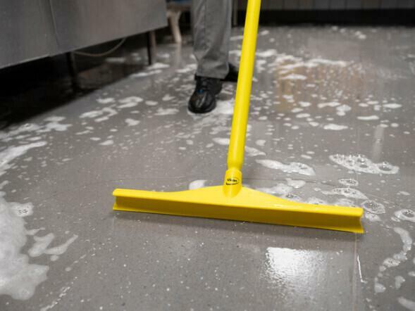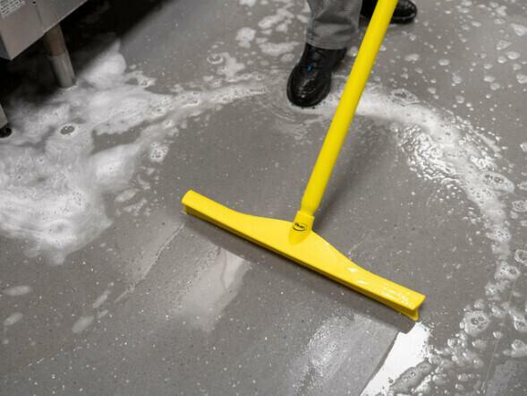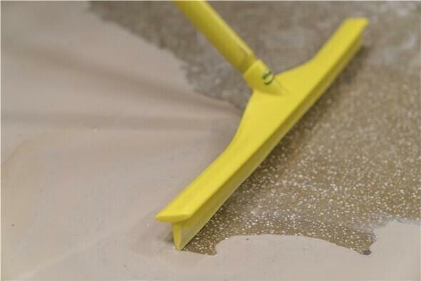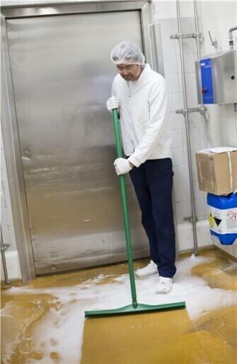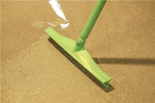 De ultrahygiënische vloerwisser is uitzonderlijk geschikt voor het droogwissen van natte vloeren voor het verwijderen van grote hoeveelheden vuil, want het concept van het eenbladig rubber is uiterst eenvoudig te reinigen