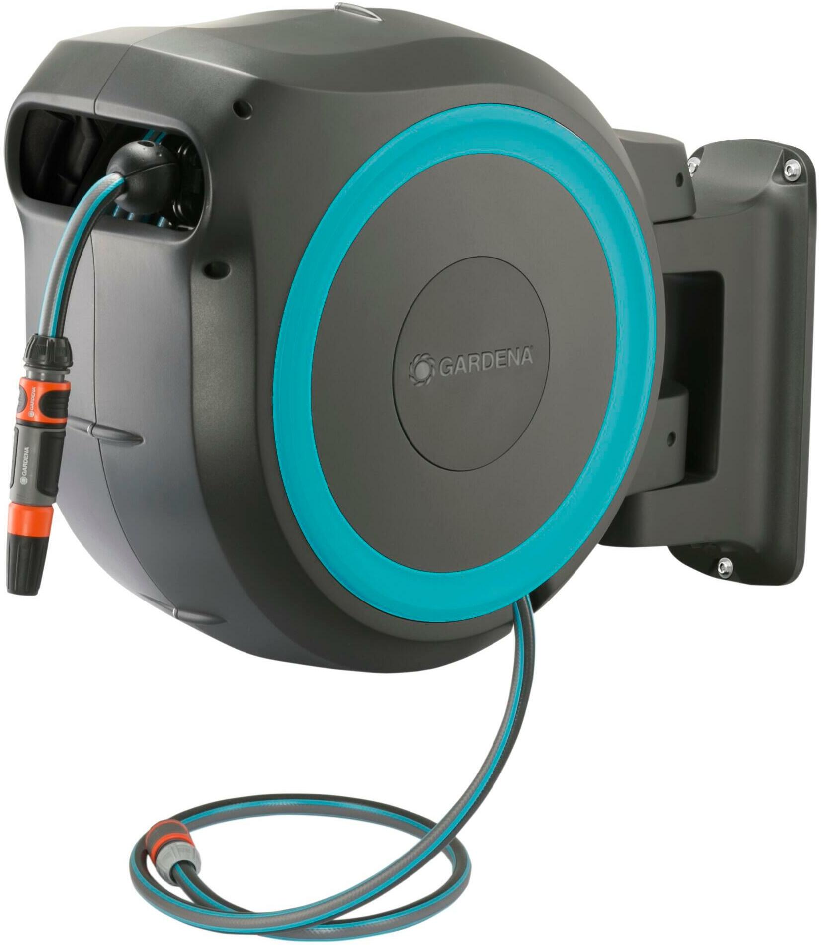 Dankzij de handige muurbeugel kan de slangenhouder 180 graden worden gedraaid en uw bewegingen in de tuin ongemerkt volgen.